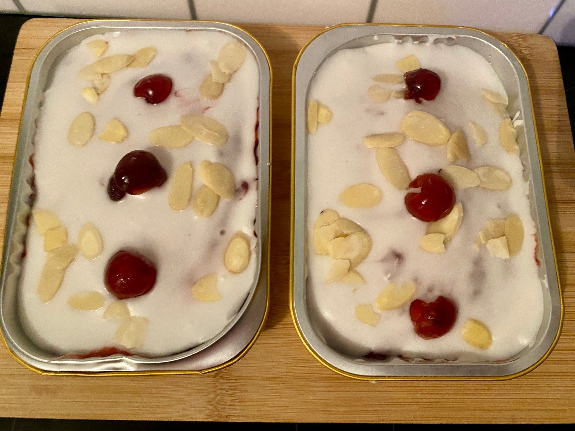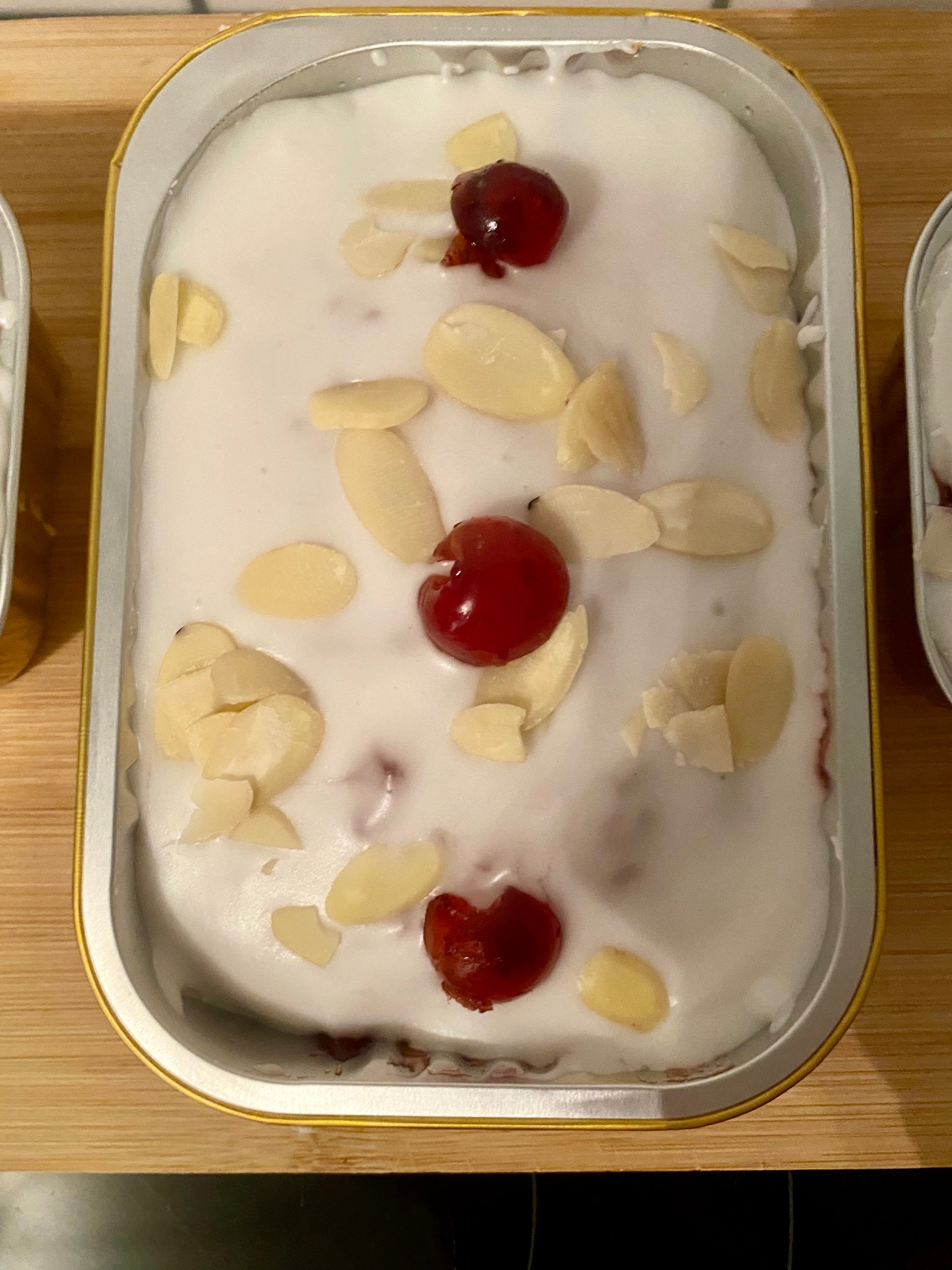 Almond sponge topped with jam and almond icing.